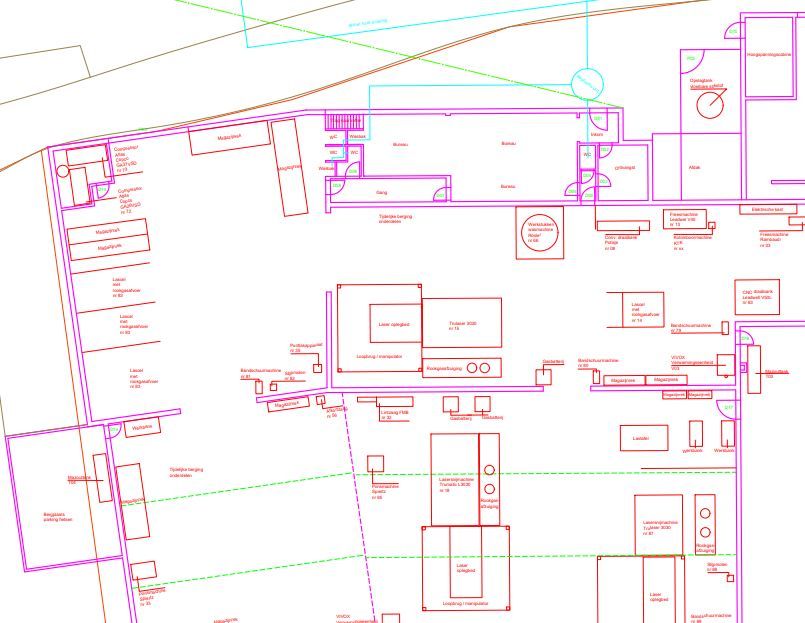 Opmeting en opmaak van grondplan van een industriële metaalbewerker naar aanleiding van het vernieuwen van de omgevingsvergunning.