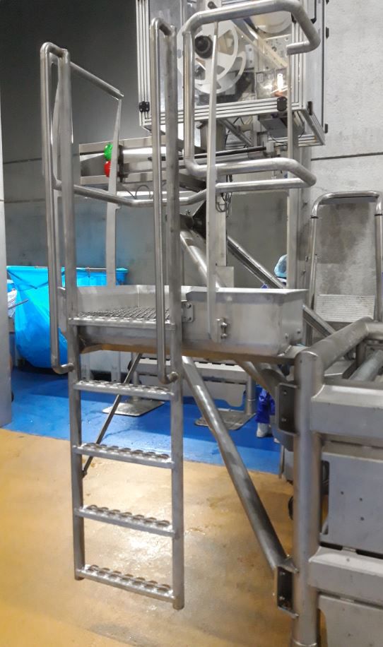 Op maat ontworpen platform met toegangsladder voor instelling en onderhoud van verpakkingsmachine.
