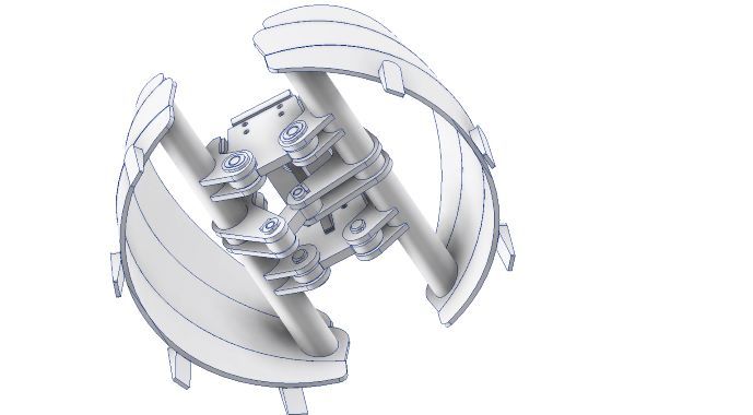 De 2 helften worden hydraulisch via een stangenmechanisme bediend.